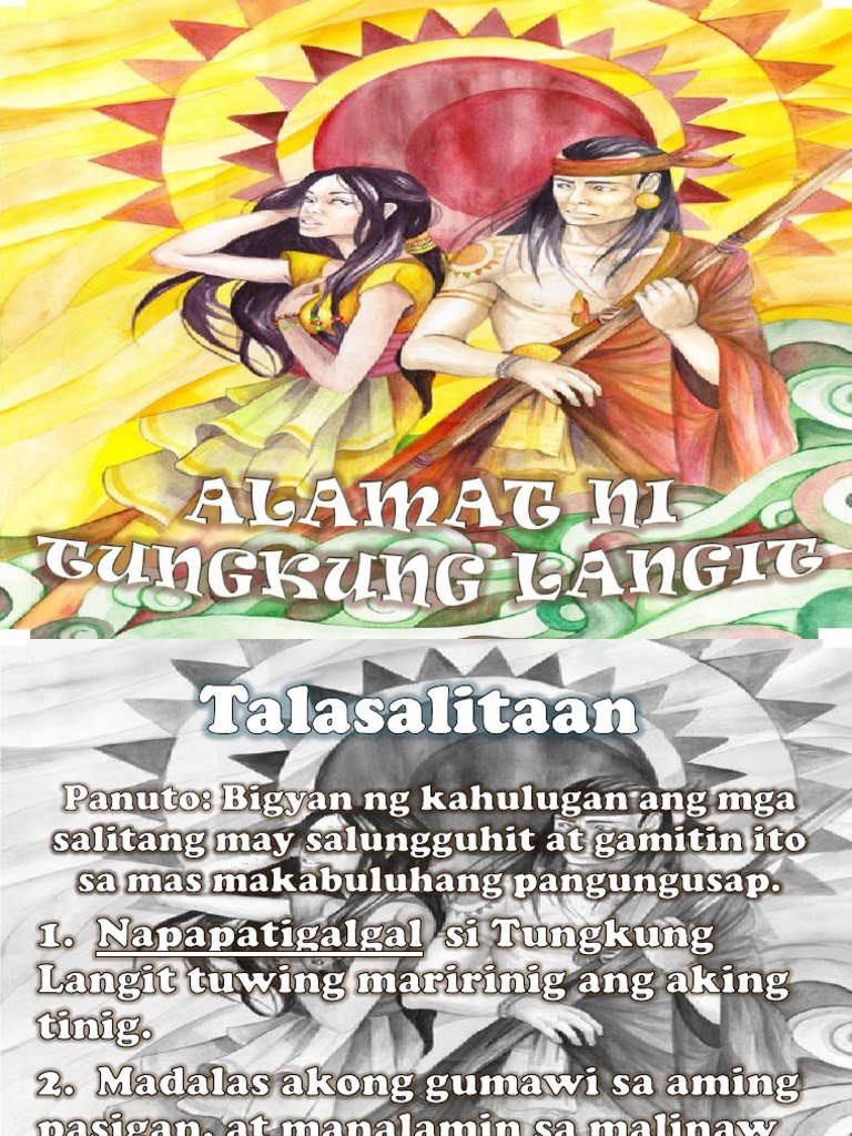 Love Trust Anger and Regret This story teaches us that jealousy can destroy the relationship of two people even how much they love each other. Tungkung Langit made the sea and the earth and he filled it with trees and. The old Visayan folklore states that Tungkung Langit fell in love with Alunsina.