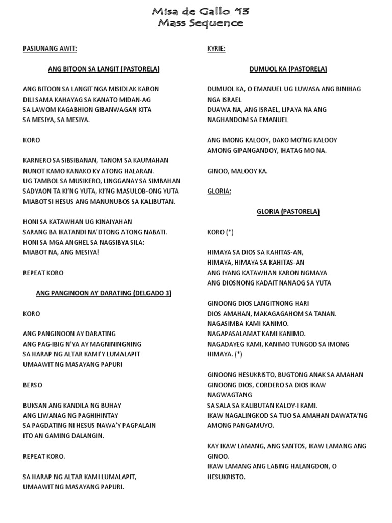 Apil na niini ang bituon nga maoy simbolo sa kang kristong pagkatawo. Carmelites Monastry - Video PASTORELA 11th MASS ENTRANCE ANG BITOON SA LANGIT WITH LYRICS. MisaDeGalloPastorelaNyorRudyVillanuevaBitoonSaLangit To be sung during the start of Misa De Gallo masses excluding Mass of the Day and in all the mas.